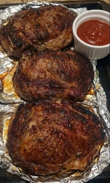 • The Meat: 3 thick-cut ribeye steaks (about 1–1.5 inches thick).