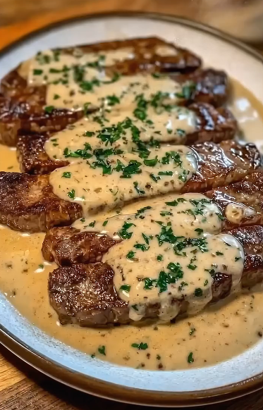 6. Combine: Return the steak and any accumulated juices to the skillet, spooning the creamy sauce over the meat.