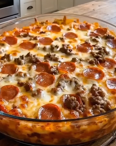 - Top: Spread an even layer of shredded mozzarella over the pasta. Arrange the pepperoni slices and any additional toppings on top of the cheese.