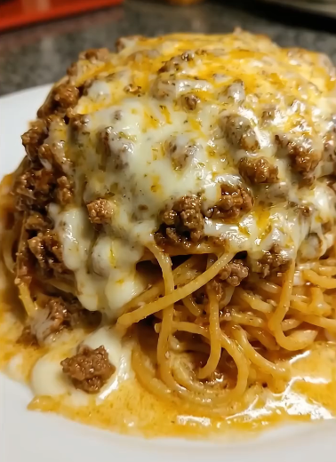 - Top with the remaining spaghetti.