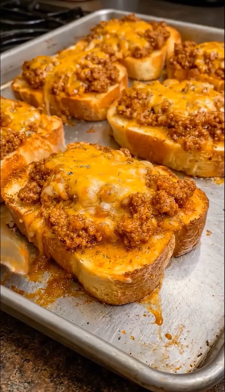 - Stuff It: Spoon the Sloppy Joe mixture into the bread, then top with the remaining cheese.